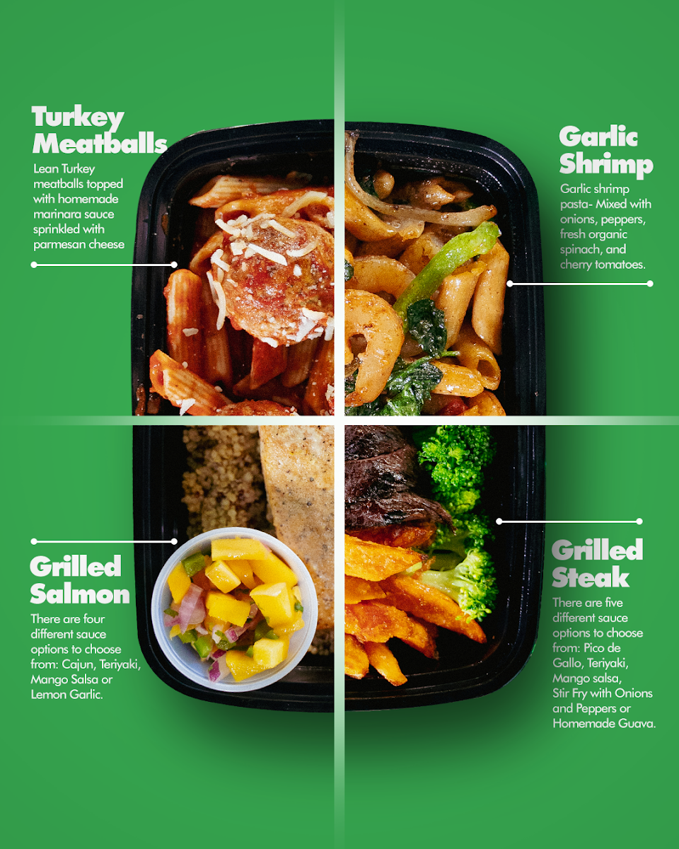 Home-made turkey meatballs with our delicious red sauce and low-fat cheese. Cal - 1014G Carbs - 53G Fat - 53G Protein - 83G