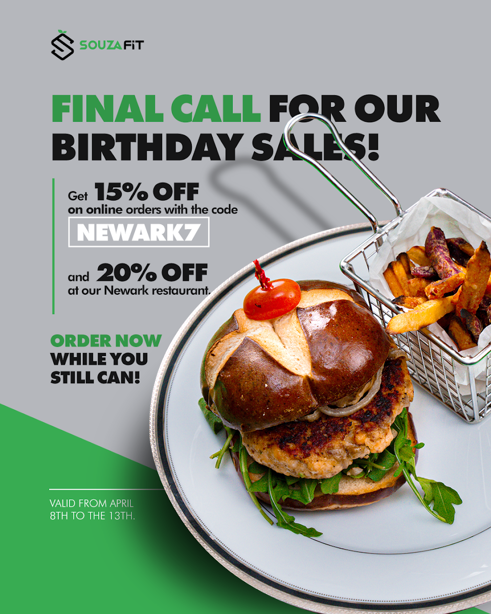 Home-made turkey patty with smoked BBQ sauce, grilled onions, mushrooms, organic fresh spinach, and low-fat mozzarella cheese. Cal - 738G Carbs - 35G Fat - 39G Protein - 61G